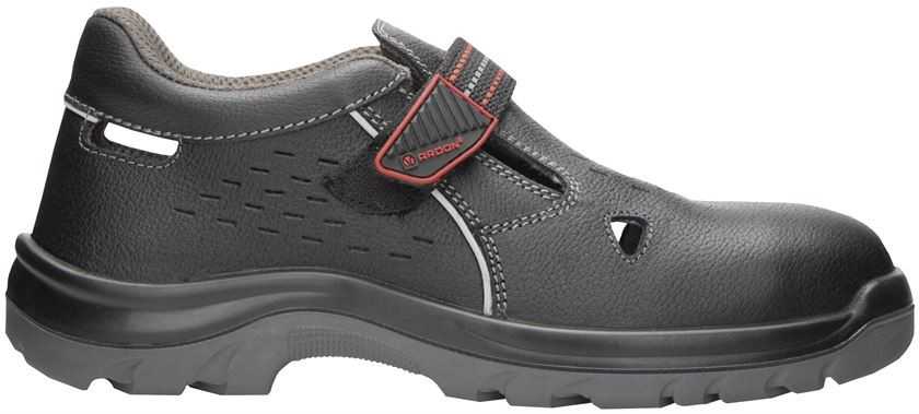 Pracovný celokožený sandál bez oceľovej špice a planžety. Reflexný pásik pre vyššiu viditeľnosť. PU2D podošva, odolná olejom, pohonným hmotám a kontaktnému teplu do 110 ° C, antistatická
