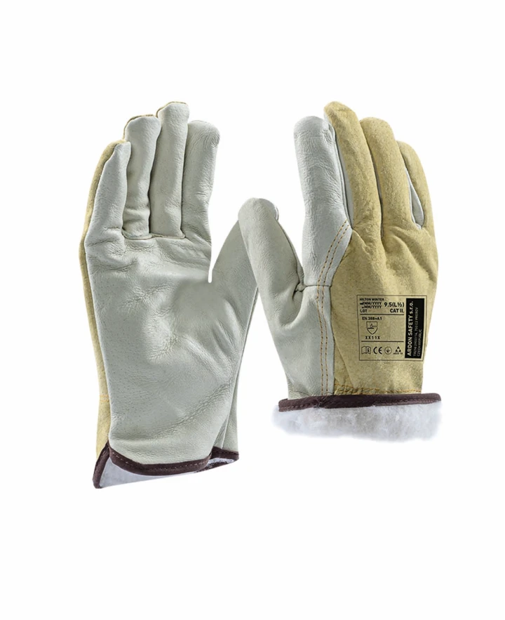 Pracovné rukavice so zateplením , vyrobené z kvalitnej bravčovej lícovky v dlani , ktorá zaisťuje citlivosť, pevnosť a odolnosť pri manipulácii s materiálom. Chrbát rukavíc je z bravčovej štiepenky , čo zvyšuje odolnosť a predlžuje životnosť pri bežnom pracovnom zaťažení.