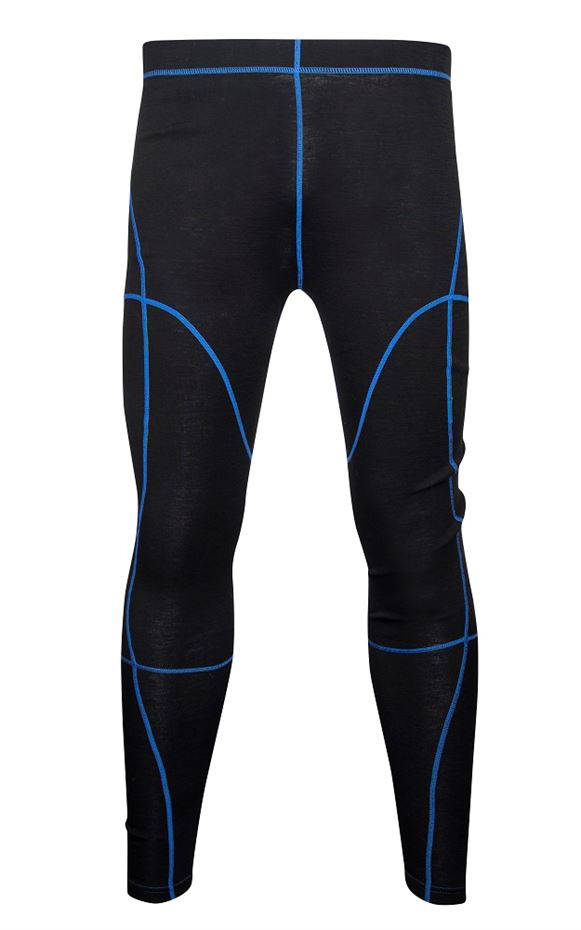 kvalitné funkčné spodky dlhé nohavice pružný pás hodnotný prírodný materiál kontrastné modré prešitie materiál: 50% merino vlna, 50% polyester farba: čierna veľkosti: S - XXLZáruka: 24 mesiacovbalenie 1/20 ks v kartóne