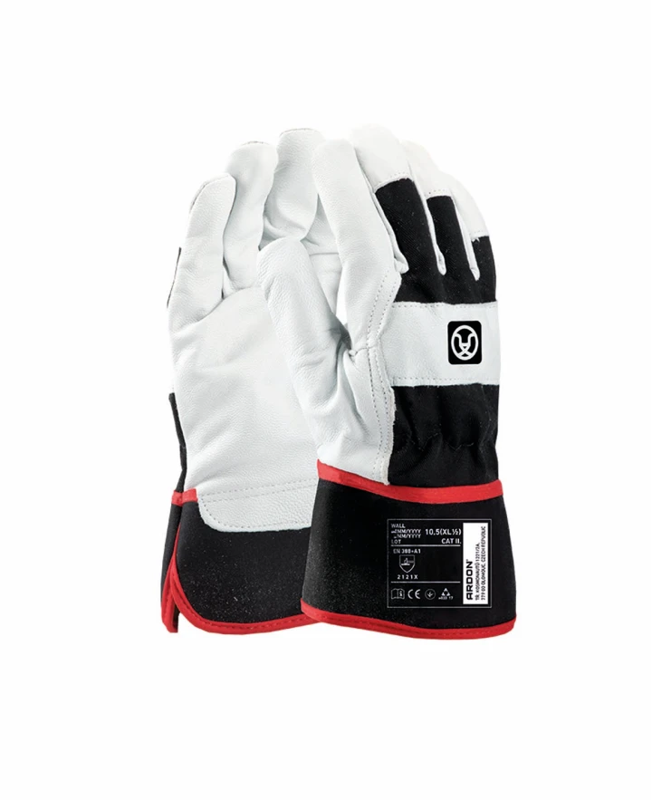 Dlaň rukavice je vyrobená z kvalitnej kozinky, ktorá je odolná voči mechanickému poškodeniu, ľahká a príjemná na dotyk. Chrbát z bavlny zaisťuje priedušnosť a účinne odvádza pot, čím zvyšuje komfort pri dlhodobom používaní. Vystužená manžeta rukavicu pevne fixuje na ruky a zabraňuje jej posunutiu alebo skĺznutiu.