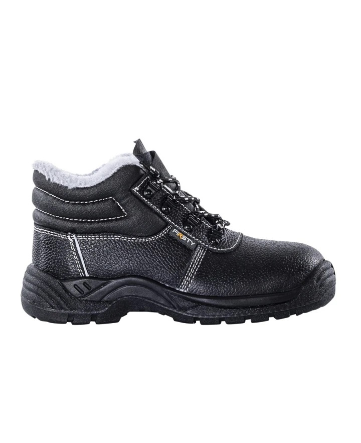 Členková pracovná obuv zateplená umelou kožušinou, s oceľovou špičkou a klinom.