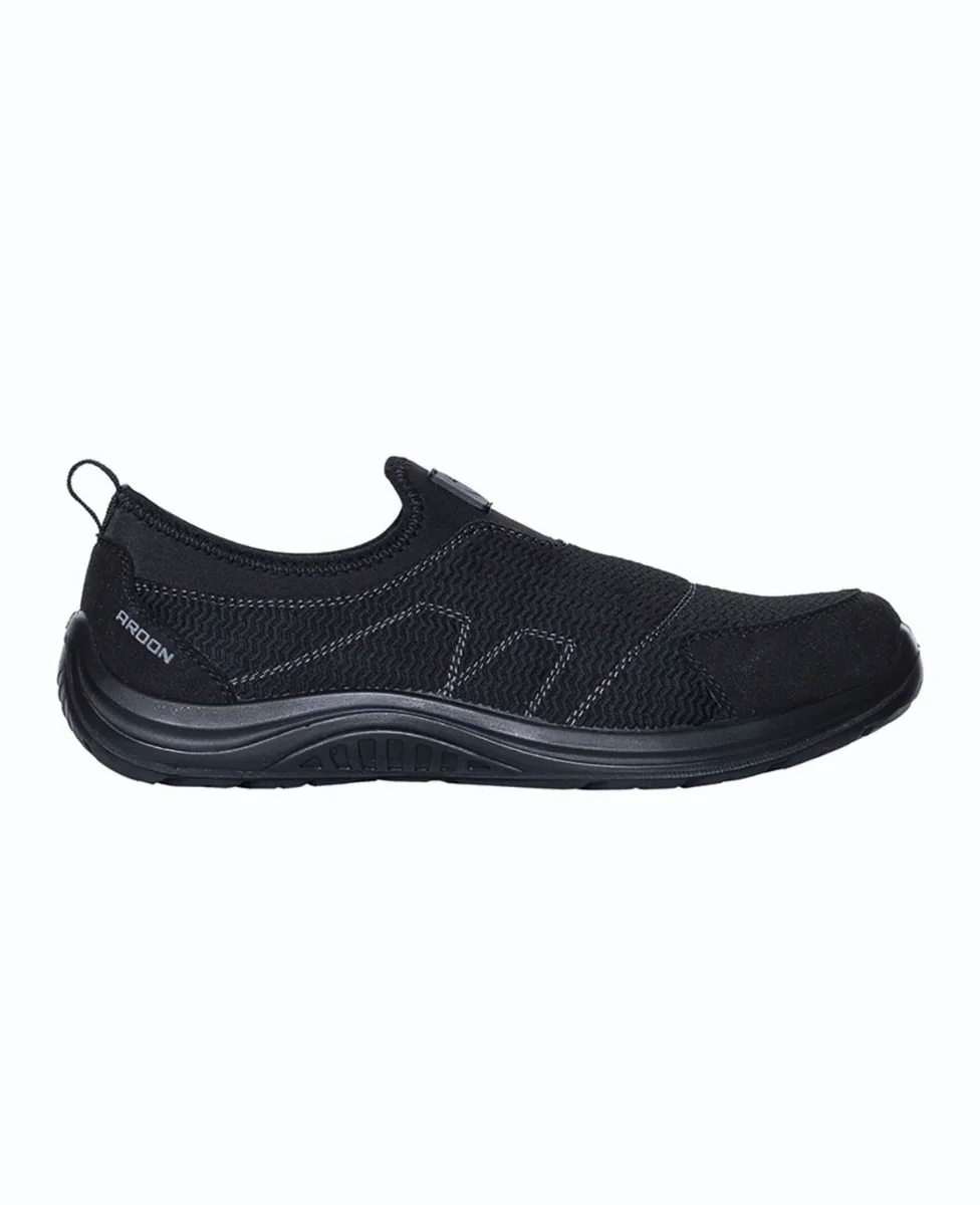Bezpečnostní nazouvací mokasín s prodyšným svrškem na dvoukomponentní nástřikové podešvi PU/PU. Lehká tenká podešev s oblou patou je vhodná pro řízení vozidel i různé pracovní činnosti ve vnitřním prostředí. Snadné a rychlé nazouvání a vyzouvání obuvi.