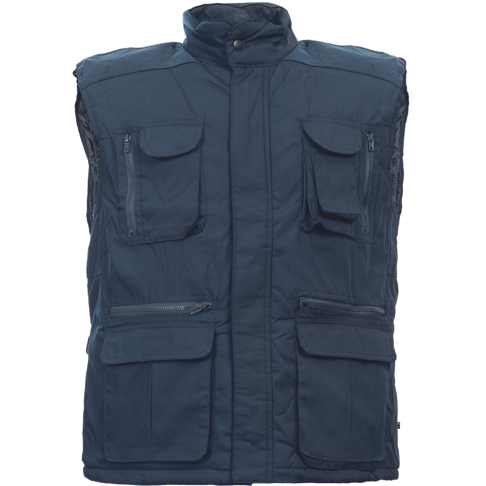 • zateplená pánska zimná vesta, zapínanie na zips kryté légou • 2 predné multifunkčné vrecká • 2 náprsné multifunkčné vrecká • spodný lem na stiahnutie na šnúrku
