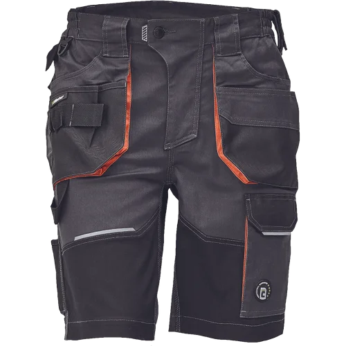 • pánské pracovní šortky s pružným pasem a multifunkčními kapsami • Oxford 600D zesílení v oblasti stehen • odolné trojité prošití nohavic a sedu • reflexní prvky