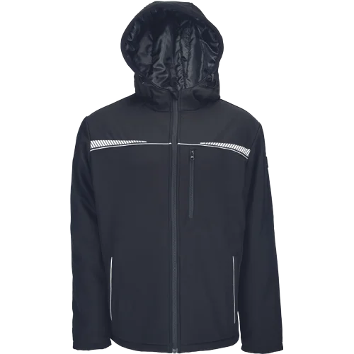 • zimní softshellová bunda se zateplenou kapucí a zapínáním na zip • dvě boční kapsy na zip • jedna levá náprsní kapsa na zip • jedna vnitřní náprsní kapsa • elastické manžety rukávů • ventilace na zip v podpaží • reflexní detaily a lemování