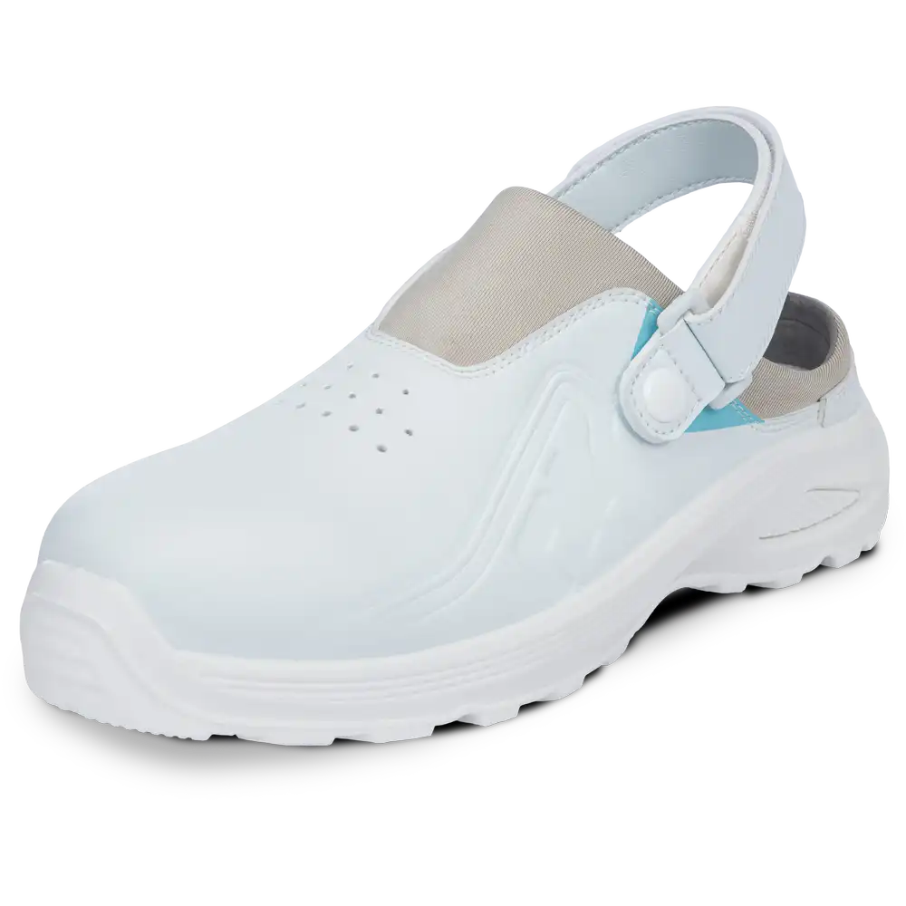 Pracovný pantofel HYGOSAFE v bielej farbe je navrhnutý pre prostredia so zvýšenými nárokmi na hygienu, čistotu a celodenný komfort. Je ideálnou voľbou najmä pre pracovníkov v zdravotníctve, sociálnych službách, potravinárstve alebo gastronómii.