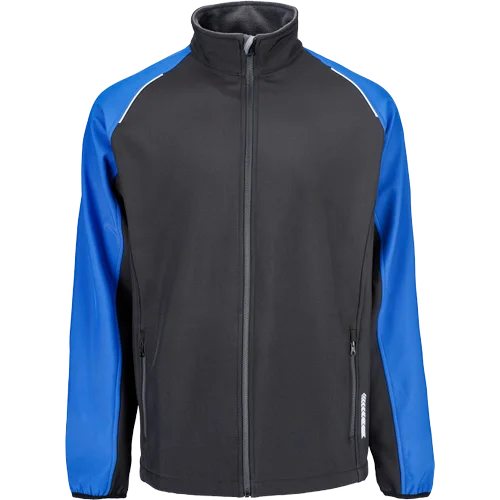 • softshellová bunda bez kapuce se zapínáním na zip • 2 boční kapsy na zip • elastické lemy rukávů • reflexní lemování