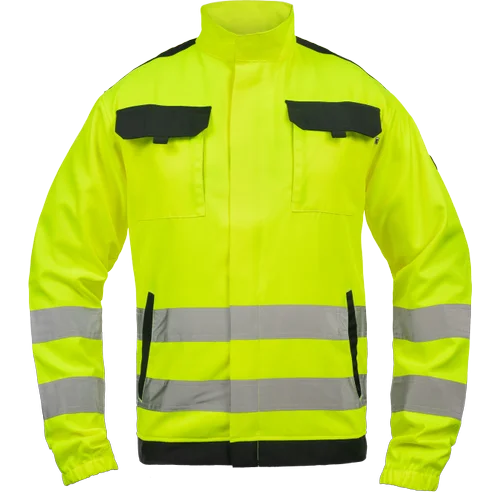 • unisex HI-VIS pracovní bunda se zapínáním na zip krytým légou • 2 boční kapsy • 2 náprsní kapsy s klopou na suchý zip • 2 šité 5 cm široké reflexní pruhy přes boky a spodní rukávy • zesílení namáhaných částí ramen • pružné manžety rukávů a spodní obvod v pase