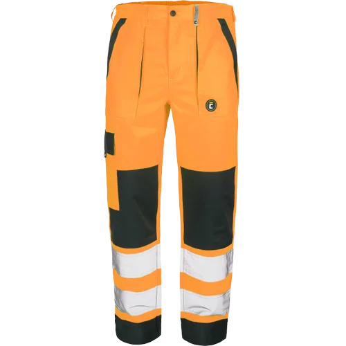• pánské HI-VIS pracovní kalhoty s elastickým pasem • 2 přední kapsy • 1 stehenní kapsa • 2 zadní kapsy se zapínáním na suchý zip • 2 šité 7,5 cm široké reflexní pruhy na spodních částech nohavic • zesílená oblast kolen • nastavitelná délka nohavic