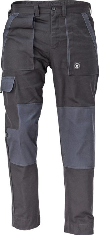 • pánské pracovní kalhoty s elastickým pasem • 2 přední kapsy • 1 stehenní kapsa • 2 zadní kapsy • zesílená oblast kolen • nastavitelná délka nohavic
