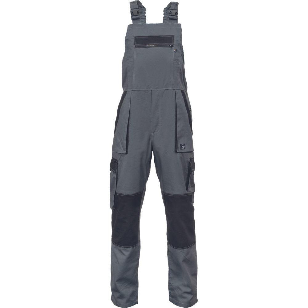 • pánske ľahké pracovné nohavice s trakmi a elastickým pásom • široké traky s plastovými sponami • 2 predné vrecká, 2 stehenné vrecká • 1 veľké náprsné vrecko na zips, 2 zadné vrecká • zosilnenie nohavíc v oblasti kolien • nastaviteľná dĺžka nohavíc