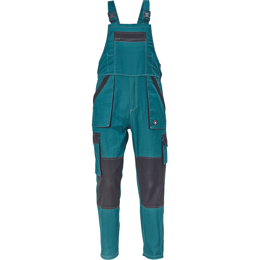 • pánske ľahké pracovné nohavice s trakmi a elastickým pásom • široké traky s plastovými sponami • 2 predné vrecká, 2 stehenné vrecká • 1 veľké náprsné vrecko na zips, 2 zadné vrecká • zosilnenie nohavíc v oblasti kolien • nastaviteľná dĺžka nohavíc