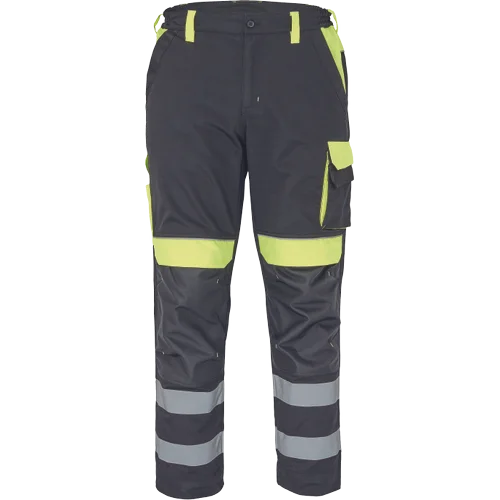 • pánské reflexní pracovní kalhoty s elastickým pasem • 2 přední kapsy • 1 levá zdvojená stehenní kapsa • 2 zadní kapsy • 2 menší zadní kapsičky na pravém stehnu • dvojice našitých 5 cm reflexních pruhů na spodní části nohavic • reflexní paspulky • Oxford 600D zesílení kolen s možností horního vkládání nákoleníků • možnost prodloužení nohavic