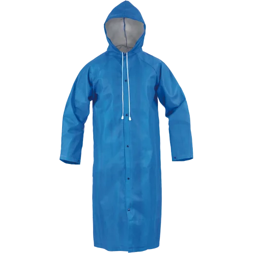 • nepromokavý plášť s kapucí a se zapínáním na druky • obvod kapuce je možné upravit pomocí tkanice • ventilace v podpaží • manžety rukávů se zapínáním na druky • zatavené švy • 100% recyklovatelný oděv