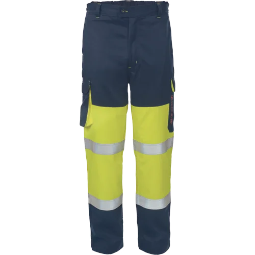 • pánské HI-VIS multinormní kalhoty s elastickým pasem • 2 boční kapsy • 2 stehenní kapsy s klopou na suchý zip • 2 zadní kapsy na suchý zip • dvojice 5 cm šitých reflexních pruhů okolo lýtek • nastavitelná délka nohavic
