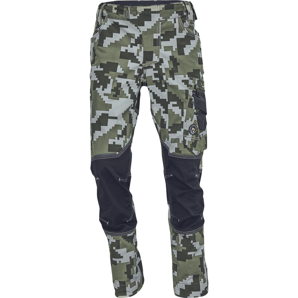 Popis: pánske pracovné nohavice, elastický inovatívny materiál TRIFIBETEX® v prírodnom maskovanie, slim strih, znížený pružný pás, odolné trojité prešitie nohavíc a sedu, CORDURA zosilnená oblasť kolien, priestranné multifunkčné predné vrecká s pútkami na náradie, 2 zadné vrecká na suchý zips, stehenné vrecko na telefón s príklopkou a zapínaním na suchý zips, vrecko na meter a nôž, pútko na kladivo, "D" krúžok, pútko na náradie v páse, originálne spracovanie zapínanie nohavíc, reflektívny prvky vo farebnom odtieni, nastaviteľná dĺžka nohavíc.
