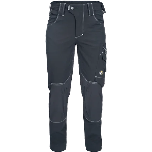 • pánské pracovní kalhoty z elastického materiálu TRIFIBETEX v kombinaci s odolnou tkaninou CORDURA® použitou pro zesílení nejvíce namáhaných částí • zesílené oblasti kolen s možností bočního vkládání chráničů kolen • elastický pas • 2 boční kapsy • 2 zadní kapsy • multifunkční kapsa na levém stehně • reflexní prvky v barevném odstínu • možnost prodloužení nohavic