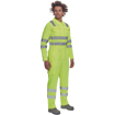 Popis: pánsky ľahký full HI-VIS pracovný overal s reflexnými pruhmi cez ramená, v bokoch, na rukávoch a nohaviciach; elastický pás, zapínanie na zips kryté légou na suchý zips; 2 postranné vrecká, 1 vrecko na mince; 1 multifunkčné stehenné vrecko; 2 náprsné vrecká s chlopňou; 2 zadné vrecká; nastaviteľná dĺžka nohavíc