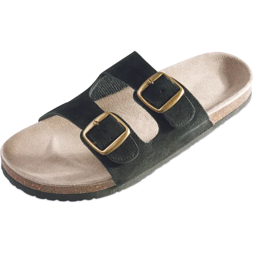 Korkové pantofle s podrážkou z pěnové pryže a koženým svrškem.