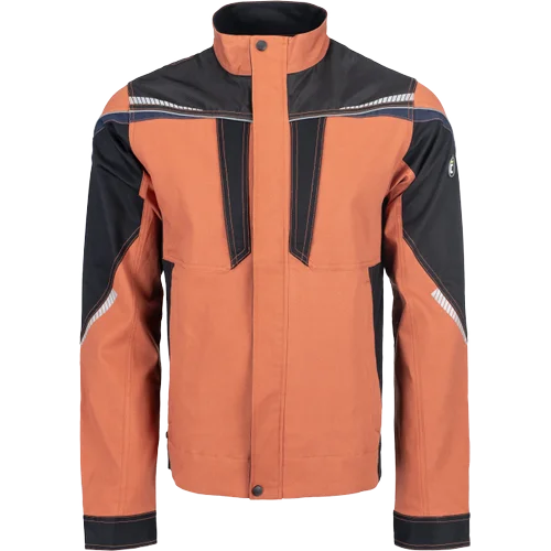 • pánská pracovní bunda se zapínáním na zip • vyrobena ze strečové tkaniny • 2 boční kapsy, 2 náprsní kapsy na zip • vyztužení namáhaných částí • reflexní lemování a tištěné reflexní detaily