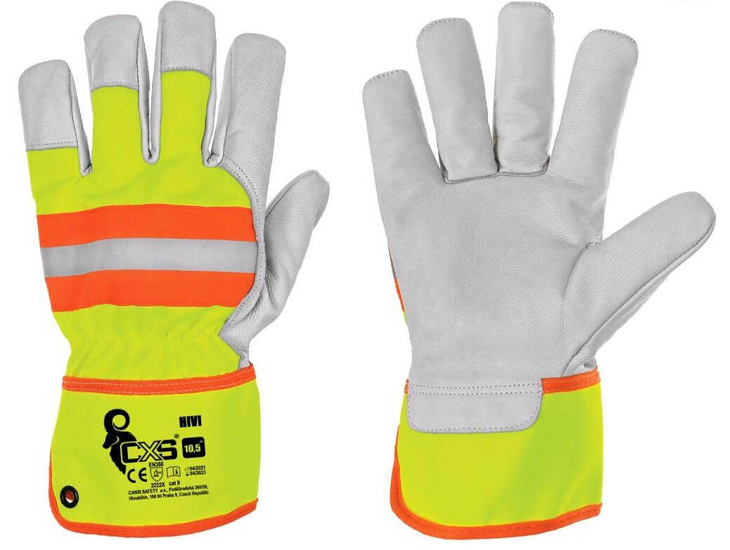 Odolné kombinované pracovné rukavice v žlto-oranžovom prevedení s reflexným prvkom pre lepšiu viditeľnosť pri práci. Dlaň z kvalitnej kozinkovej lícovky zabezpečuje vysokú odolnosť proti oderu a zároveň veľmi dobrý cit pri manipulácii s materiálom.