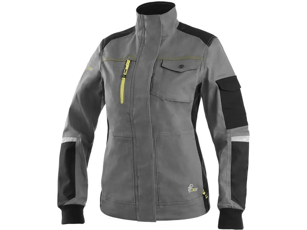 Dámska montérková blúza, strečová tkanina umožňujúca voľný pohyb, ramená vystužené 600D polyesterom, rukávy s pružnou manžetou, vrecko s chlopňou na ľavom rukáve, kryté zapínanie na zips a cvoky, náprsné vrecká - na cvok a zips, bočné vrecká doplnky.