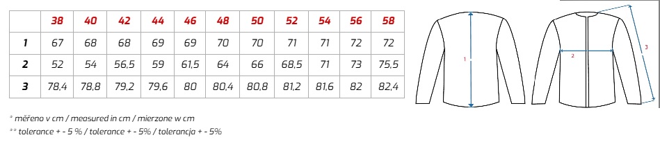 Veľkosť: 38; 40; 42; 44; 46; 48; 50; 52; 54; 56; 58