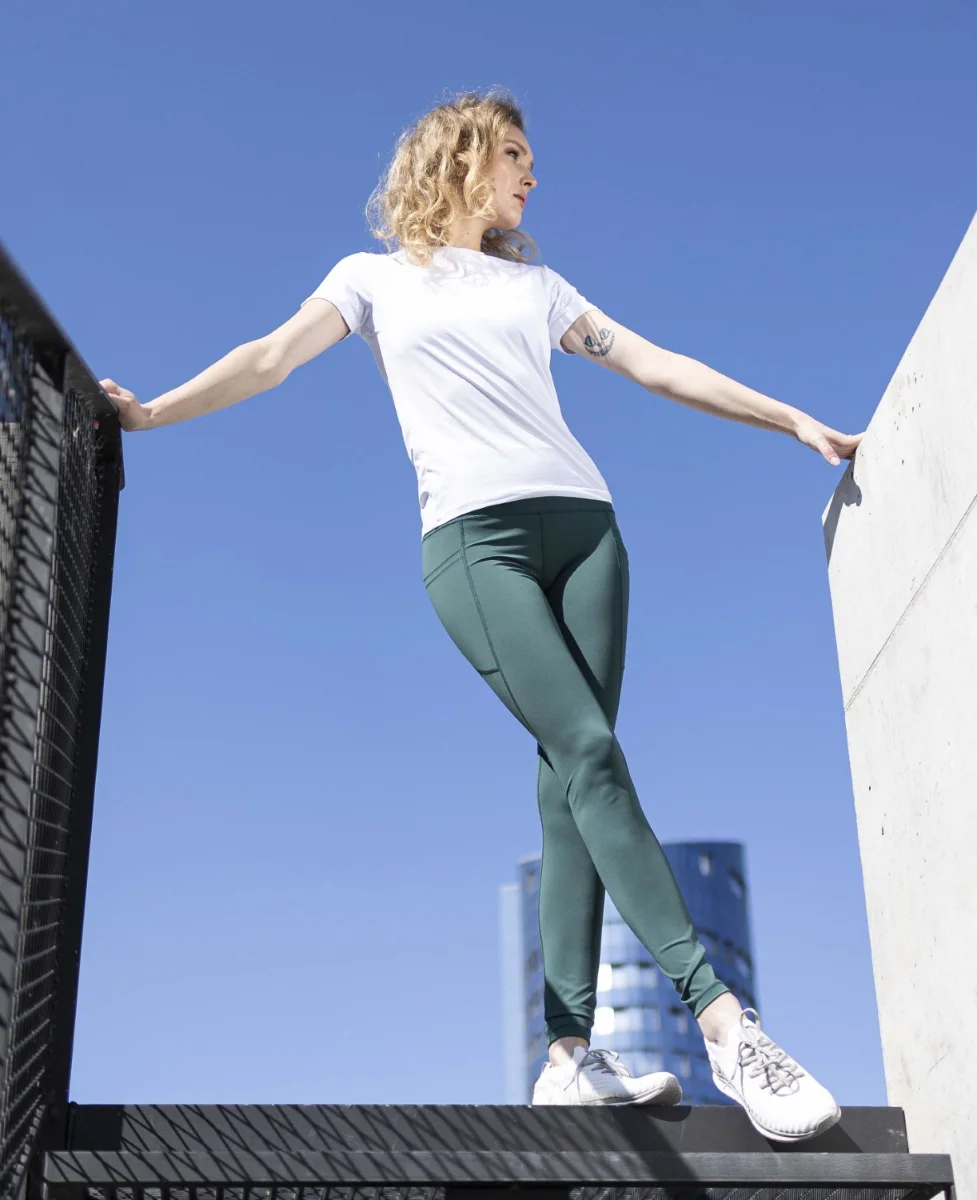 Dámské sportovní legíny se zvýšeným zesíleným pasem, vyvinuté speciálně pro ženy. Díky technologii širšího opasku perfektně sedí na postavě, zatímco praktické kapsy v bočním švu umožňují pohodlné uložení drobností. Počesaný nylon je lehký, prodyšný, příjemný na dotek a maximálně přizpůsobivý. Legíny jsou skvělou volbou pro sportovní aktivity i volný čas.