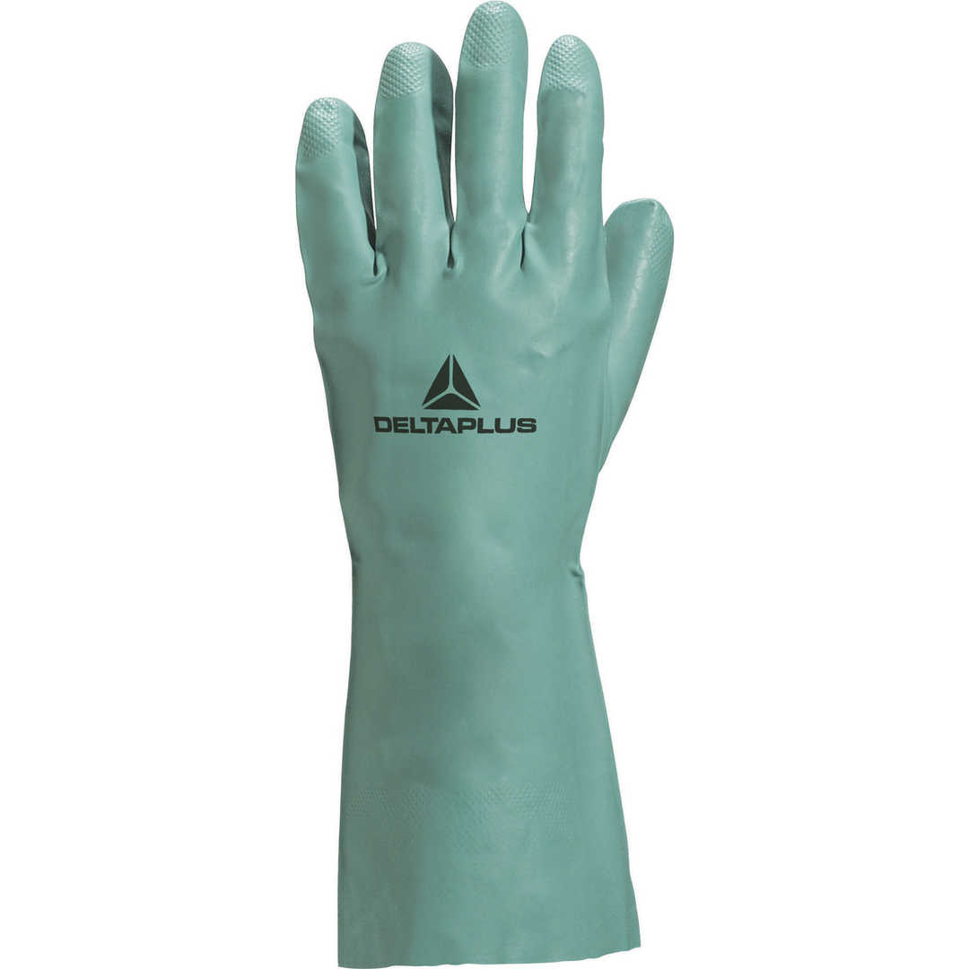 Nitrilové rukavice flokované. Dĺžka: 33 cm. Hrúbka: 0,38 mm.Podklad: 100% nitril.Obliečka: 100% bavlna.Použitie výrobku: Verejné stavby, Chémia-Petrochémia, Ropa a zemný plyn (ťažba), Poľnohospodárstvo / Lesníctvo / Rybolov, Hotely / StravovanieRiziká: Biologické, Opotrebenie, Chemické, Častice Užívateľské výhody: Reliéfna štruktúra na dlaniach a prstoch: Dobrý úchop manipulovaných predmetovFlokované vnútro: Dobrá absorpcia potu poskytuje vysokú mieru komfortu
