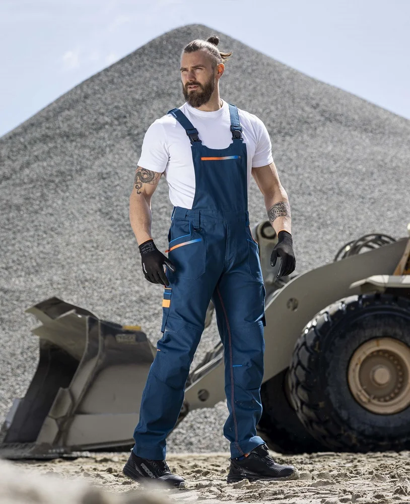 Strečové bavlněné montérkové kalhoty s laclem ze speciálního materiálu Amalytton®, který vyniká zvýšenou pevností a hladkým, jemným povrchem. Sníženou gramáž oceníte díky příjemnému pocitu při nošení. Na exponovaných partiích je použitý odolný a čtyřsměrně elastický materiál Tabiflex®. Kalhoty mají vysoce funkční ergonomický 3D střih SLIM FIT, který zvýrazňuje siluetu.Oblast kolen je zesílená odolným materiálem Oxford s vodoodpudivou úpravou, kapsa na nákoleníky umožňuje použití výztuhy. Technologie ADN®AdaptBelt zajišťuje plynulé přizpůsobení šířky pasu při každém pohybu bez pocitu omezení. Kalhoty jsou vybaveny vnitřní protiskluzovou páskou, D kroužkem na karabinu, 2 průhmatovými kapsami,1 přední zipovou kapsou, 1 přední nářaďovou kapsou se širokým poutkem, na pravé nohavici je umístěna multifunkční kapsa na skládací metr, šroubovák a odlamovací nůž seširokými poutky, na levé nohavici je velká dvojitá kapsa krytá patkou na druk. Zadní díl člení sedlo a 2 kapsy, pravá zadní kapsa je krytá patkou na druk, trojité prošití v namáhaných partiích. Na laclu je umístěna 1 zipová kapsa, elastické šle umožňují snadné nastavení délky. Spodní lem nohavic je vyztužený materiálem Oxford, který je odolný proti oděru. Zvýšenou viditelnost uživatele zajišťují dynamické reflexní 3D potisky a hi-vis doplňky. Délku nohavic lze snadno prodloužit o 5 cm.