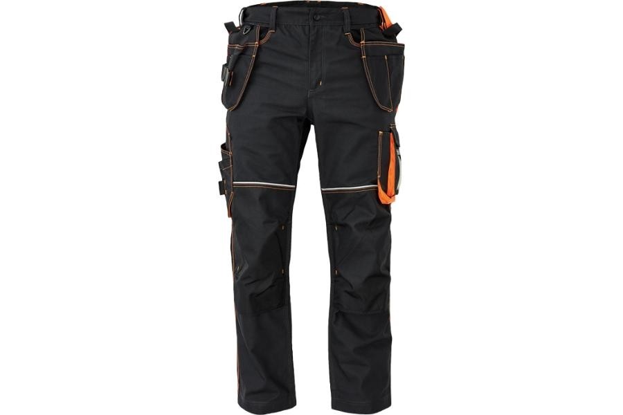 • kvalitné pánske pracovné nohavice s elastickým pásom • 6 multifunkčných vreciek na náradie • 2 extra vložiteľné vrecká • 1 transparentná pre ID kartu • 600D Oxford zosilnená oblasť kolien s možnosťou vkladania kolenných výstuh • záložka na nohavici umožňujúca predĺženie dĺžky až o 5 cm • dekoratívna