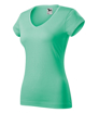 mierne priliehavý strih s bočnými švami, hlbší výstrih do V, úzky výstrih z vrchného materiálu s 5 % elastanu, vnútorná časť výstrihu zapečatená páskou z vrchného materiálu, ramenné švy spevnené páskou, kratšie rukávy, silikónová úprava