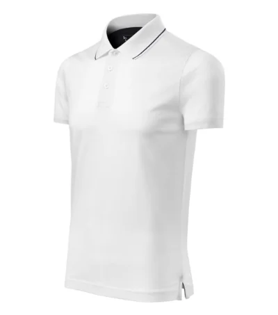 strih s bočnými švami, golier s kontrastným prúžkom z rebrového úpletu v pomere 1:1, zapínanie na 3 gombíky vo farbe materiálu, rozparky v bočných švoch s kontrastnou páskou, vnútorný výstrih s kontrastnou páskou, ramenné švy spevnené páskou, bavlna ošetrená mercerizáciou