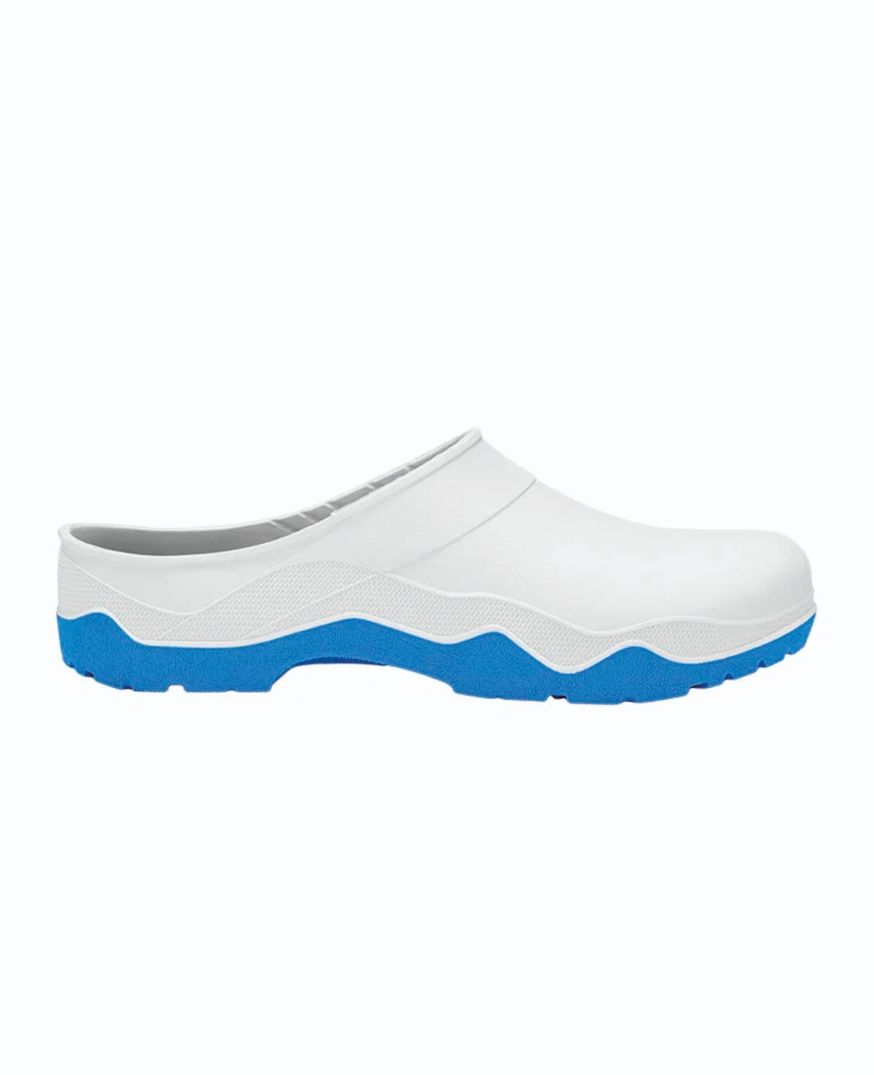 Nazouvací obuv vhodná pro použití v potravinářství, zdravotnictví či ve volném čase. Produkt je vyroben z moderního termoplastického elastomeru SEBS, který se chová jako PRYŽ. Je pružný, pevný, trvanlivý a má vynikající tepelnou a UV odolnost. Systém vnitřních kanálků zajištuje odvod vodní páry spolu s potem a noha zůstává v suchu. Obuv je opatřena antibakteriální, anatomicky tvarovanou stélkou se speciálními odvětracími otvory. Obuv lze prát až při teplotě 90°C.