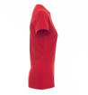 Dámske vyštíhlené tričko s krátkym rukávom a okrúhlym výstrihom, 1,5 cm pružný rebrovaný lem zo zmesi spandex pri krku s vrchným prešívaním na prednej strane, farebne kontrastná vystužovacia páska od ramena k ramenu viditeľná na golieri, pružné švy, postranný zošit.