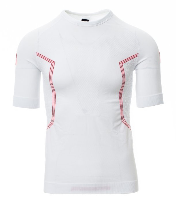Popis: Pánske termo tričko s okrúhlym výstrihom a krátkym raglánovým rukávom. Mäkký strečový úplet, špeciálne textúry na hrudi a na chrbte, na bokoch špirálové reliéfne motívy na zaistenie správnej priedušnosti a stálej termoregulácie. Golier, spodná časť a lemy rukávov Zebrované z rovnakého materiálu, pre väčšie pohodlie. Ergonomická tubulárna štruktúra zaisťuje dokonalé prispôsobenie fyziognómii tela.