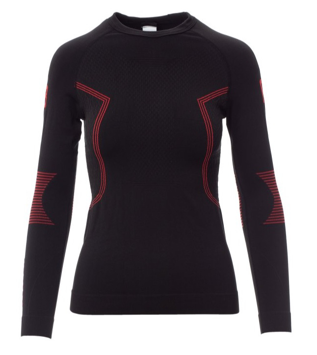 Popis: Dámske termo tričko s okrúhlym výstrihom a dlhým raglánovým rukávom. Mäkký strečový úplet, špeciálne textúry na hrudi a na chrbte, na bokoch špirálové reliéfne motívy na zaistenie správnej priedušnosti a stálej termoregulácie. Golier, spodná časť a lemy rukávov Zebrované z rovnakého materiálu, pre väčšie pohodlie. Ergonomická tubulárna štruktúra a špeciálne zdrsnenie na lakťoch zaisťuje dokonalé prispôsobenie sa fyziognómii tela.