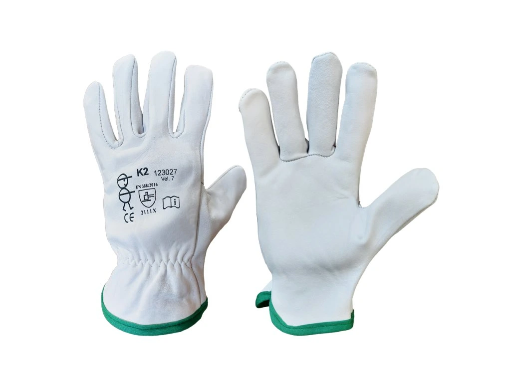 Popis:celokožené rukavice z jemnej lícovej kozinky, pružinka v zápästí, farebne odlíšený spodný lem podľa veľkostí Použitie:všeobecné - v suchom a ľahko vlhkom prostredí, vhodné napr. pre poľnohospodárstvo, strojárstvo, stavebný priemysel, logistiku,...Certifikácia:OOP kategórie II podľa Nariadenia (EÚ) 2016/425, spĺňajú požiadavky noriem EN 420: 2003 + A1: 2009, EN 388: 2016Uvedená cena za 1 pár.Záruka: 24 mesiacov
